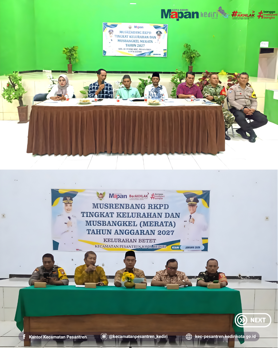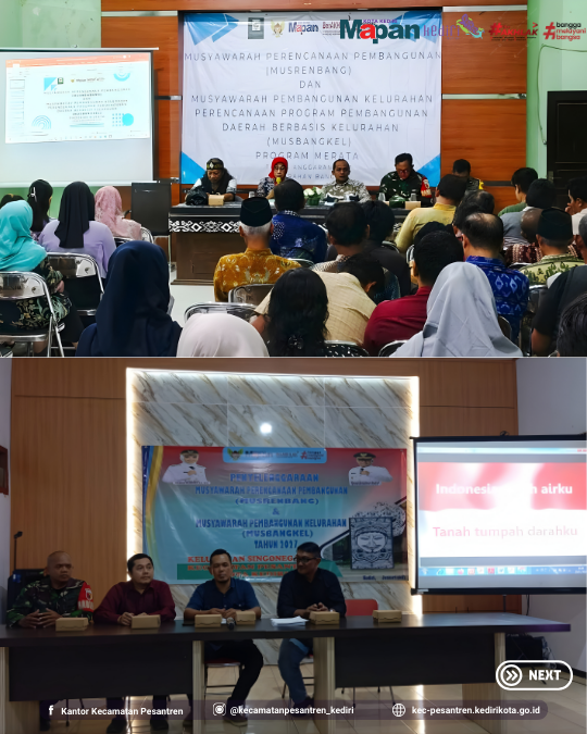 Dalam rangka kegiatan perencanaan pembangunan untuk mendukung program Pemerintah Kota Kediri tahun 2027, kelurahan di Kecamatan Pesantren melakukan Musyawarah Perencanaan Pembangunan (MUSRENBANG) dan Musyawarah Pembangunan Kelurahan (MUSBANGKEL) serta Rembug Stunting sebagai penjaring aspirasi masyarakat untuk menentukan prioritas pembangunan yang sesuai dengan kebutuhan nyata di lapangan, serta mensinkronisasikan usulan kelurahan dengan Rencana Kerja Pemerintah Daerah (RKPD) Kota Kediri.