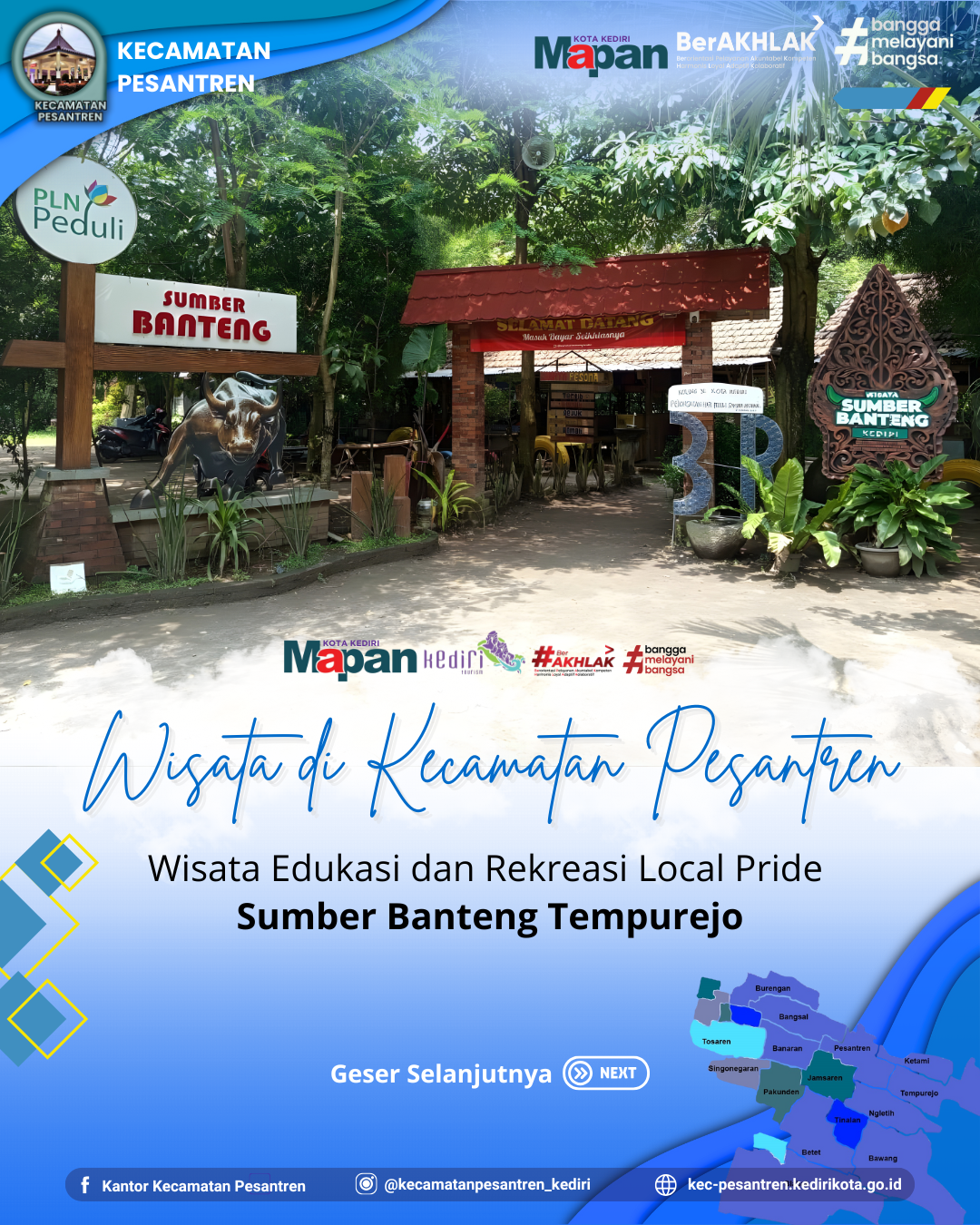 Yuk, rencanakan kunjungan Anda sekarang! Ajak keluarga, teman, sahabat, dan kenalan Anda berkunjung ke Area Wisata Sumber Banteng Tempurejo Kecamatan Pesantren Kota Kediri!