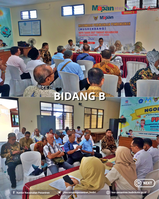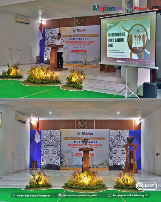 Kecamatan Pesantren melaksanakan Musyawarah Perencanaan Pembangunan (Musrenbang) Tingkat Kecamatan RKPD 2027. Kegiatan yang dihadiri oleh Wakil Wali Kota Kediri, Anggota Dewan Dapil Pesantren, Pj Sekda, Asisten, Staf Ahli, Kepala OPD Kota Kediri, Forkopimcam, Lurah Se-Kecamatan Pesantren, Kepala Puskesmas Wilayah Kecamatan Pesantren, Tokoh Masyarakat, Tokoh Agama dan lembaga lainnya ini di Aula Kecamatan Pesantren.